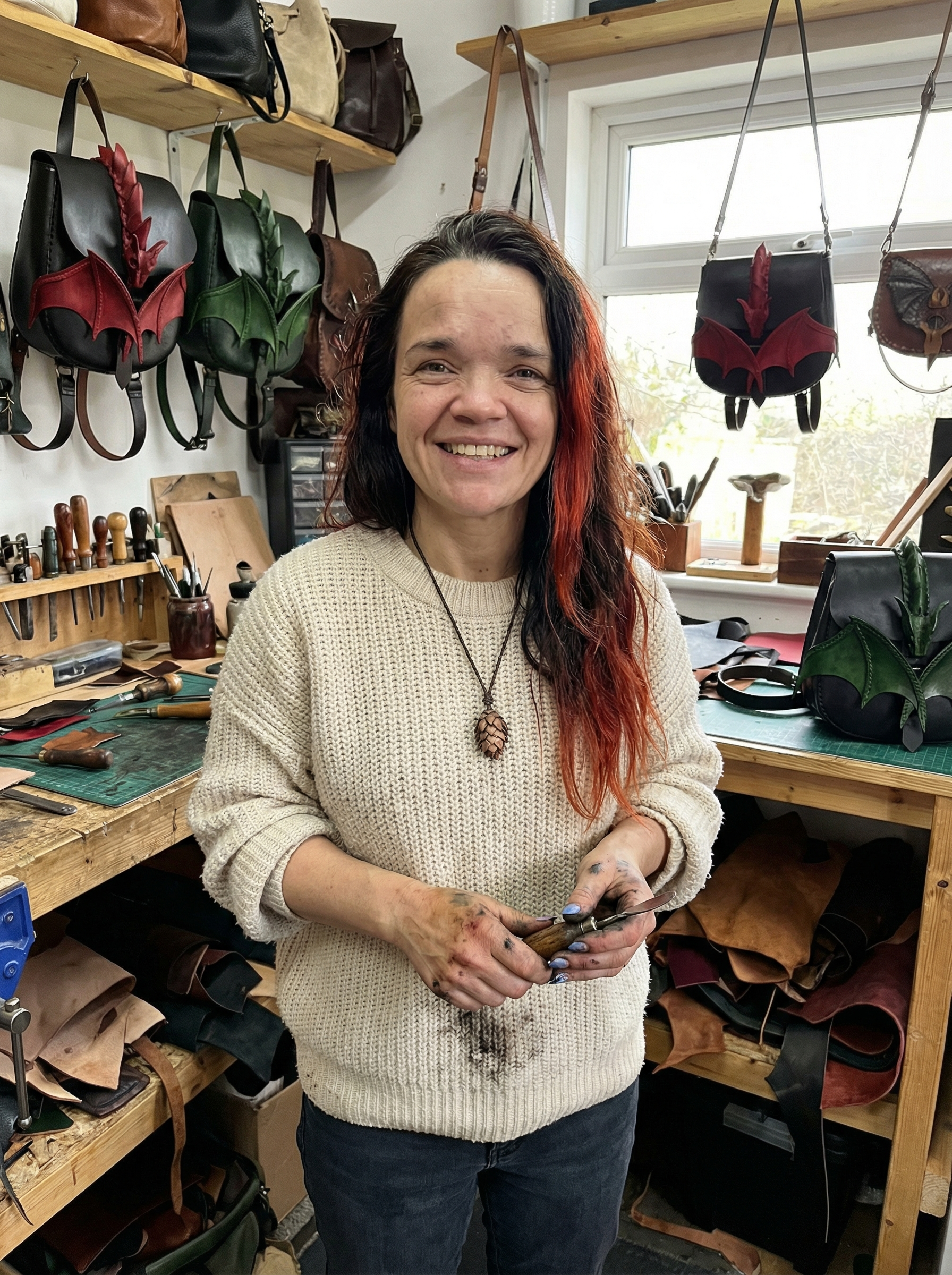 "My name is Brigid O'Brien, and I've been stitching and crafting since I was old enough to hold a needle. Growing up in the Irish countryside, I learned that the best things in life are made slowly, with care, and with love.Clover & Stitch started as a little dream — a way to share the craft I've always loved with people who appreciate something real. Every bag that leaves my workshop has been touched by these hands and made with a piece of my heart.Thank you for being here. It means the world to this small shop and the small woman behind it. "— Brigid